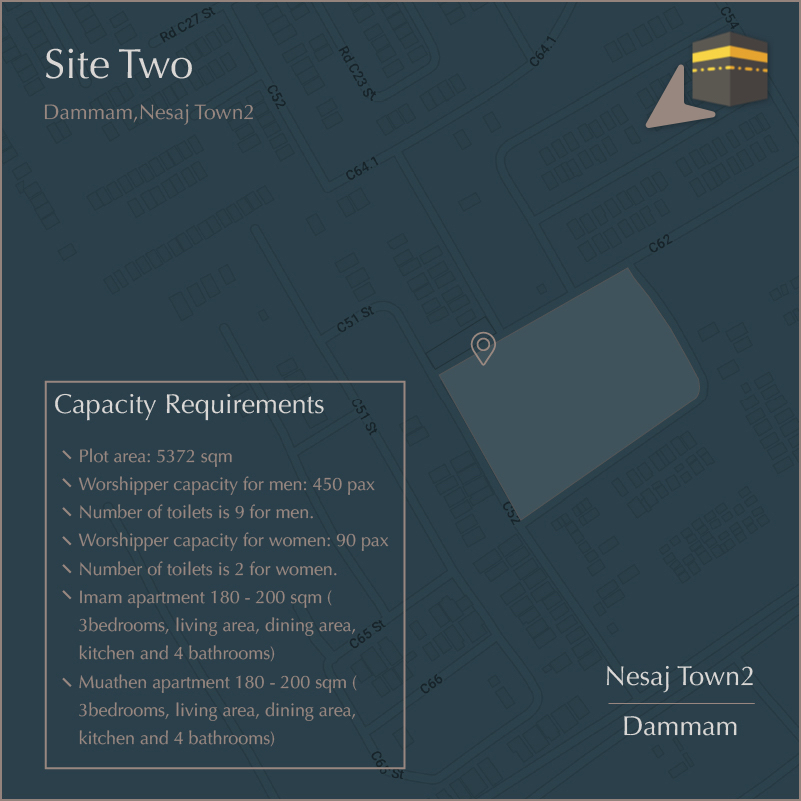 The competition shall be organized by Retal Urban Development Company and under the supervision of the Abdullatif Al Fozan Award for Mosque Architecture. The competition aims to attract innovative designs by participants from all over the world to design two Mosques in the center of the Nesaj Town 2 scheme in Dammam, eastern Saudi Arabia. The Nesaj Town scheme is considered one of the most prominent urban development projects for Retal, as its location has been carefully selected. It also aims to provide distinctive designs increasing the aesthetic, sophistication and luxury of the Nesaj Town 2 project, to become an element by which to be proud of in the future, in order the essential facilities in the neighborhood to be completed and Mosque is one of its most important components
